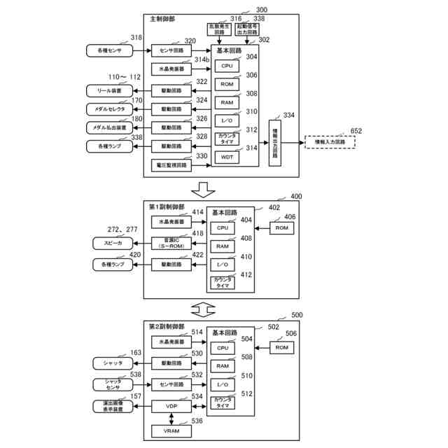 図92に示す主制御基板300Bと、同じく図92に示すリールユニット109との間に中継基板が設けられた例を示す図である。