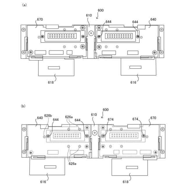 (a)識別基板610を切り離す前の主制御基板600の平面図である。(b)識別基板610を切り離した後の主制御基板600の平面図である。