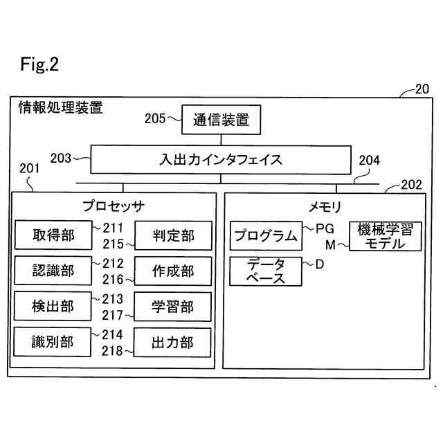 (4)上記形態であって、さらに、前記移動体識別情報と、前記移動体識別情報によって特定される前記移動体を撮影した前記定点データと、前記移動体識別情報によって特定される前記移動体を製造するときに発生した不具合に相関のある情報と、を紐付けたデータベースを作成する作成部と、前記データベースを用いて、機械学習モデルを学習させる学習部と、学習済みの前記機械学習モデルを用いて、前記不具合の発生に関連する要素を推定し、推定結果を出力する出力部と、を備えてもよい。この形態によれば、情報処理装置は、データベースを作成し、データベースを用いて機械学習モデルを学習させることで、不具合の発生に関する要素を推定して出力できる。