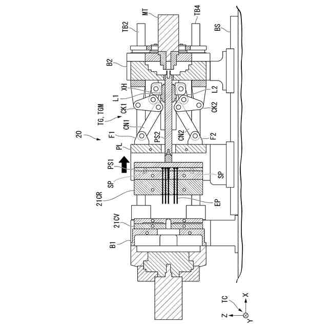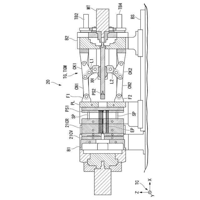 可動型21CRが離間位置に位置していない場合におけるクロスヘッドXHの周辺の様子の一例を示す図である。