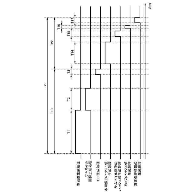 しかしながら、従来では、真正保証情報を含む画像ファイルを生成する場合、画像ファイルを構成する全ての構成データを生成した後、各構成データのハッシュ値を生成する処理を行う。このため、ユーザから真正保証情報を含む画像ファイルを生成する指示を受けてから画像ファイルの生成を完了するまでに或る程度の時間を要してしまう。