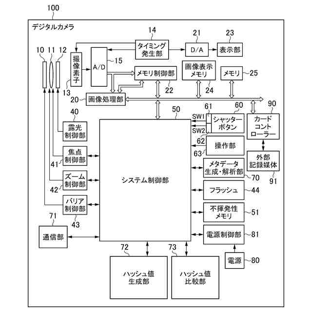 【解決手段】デジタルカメラ100は、種別が異なる複数の構成データを含む画像ファイルを生成する。デジタルカメラ100は、構成データを生成し、生成した構成データのハッシュ値を算出する。デジタルカメラ100は、生成した複数の構成データ及び算出したハッシュ値を含む画像ファイルを生成する。デジタルカメラ100は、第1の構成データを生成する処理を完了した後、第2の構成データを生成する処理と並列で、第1の構成データのハッシュ値を算出する。