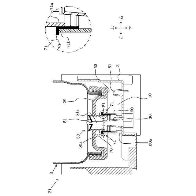 前記弁機構の下端に、前記弁機構に付着した水滴を下方へ落下させる突起部を設けた