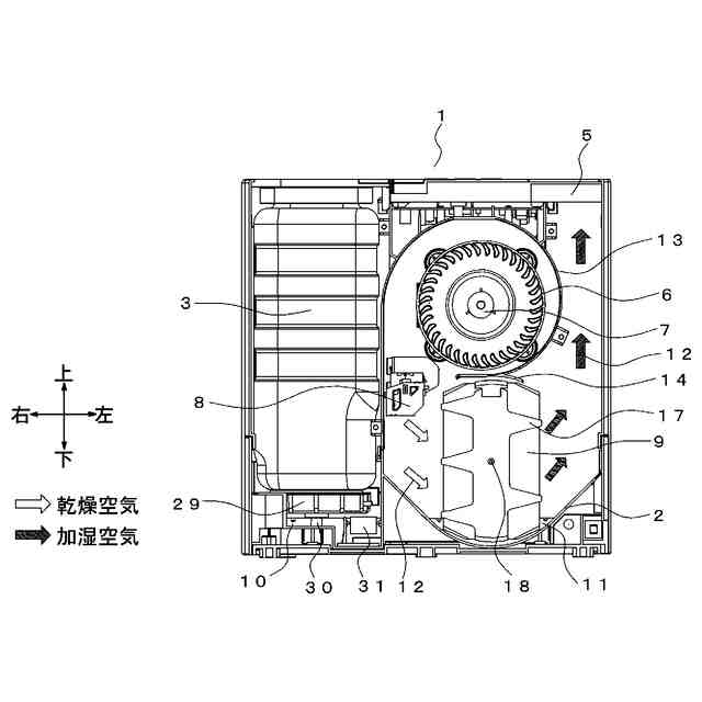 外気を吸い込むための吸込口、及び前記加湿空気を吹き出すための吹出口を有する筐体と、