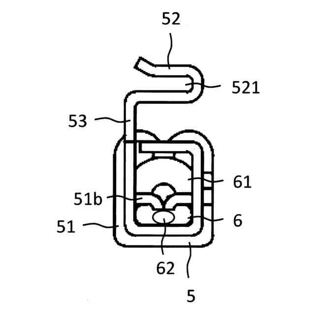 前記接続端子(5)は、前記リード線接続部(51)が前記端子挿入穴(41)に挿入された場合に前記抜け防止爪が引っ掛かる爪掛け部を有し、
