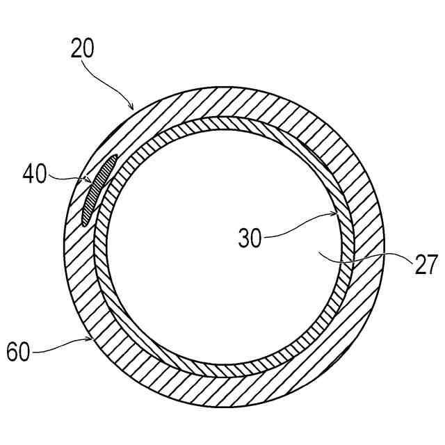 前記内層を形成する内層チューブに芯金を挿入する工程と、