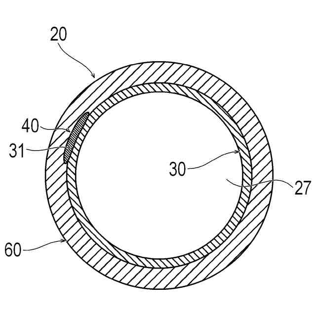 前記第1外径部は、第1の樹脂からなる第1外層を含み、