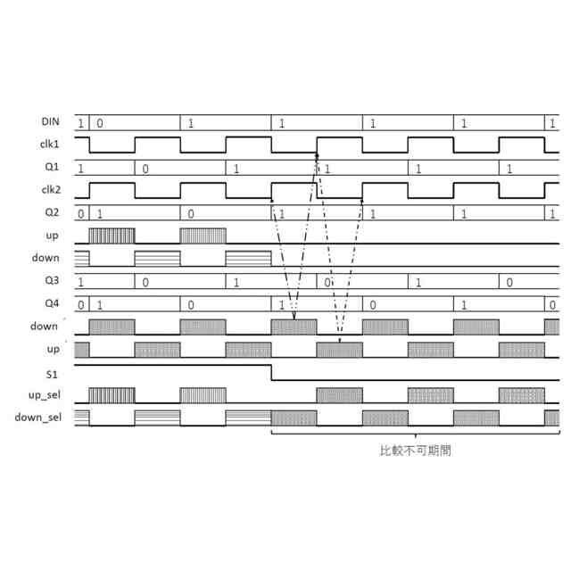 PLL(Phase Locked Loop)を用いたクロックデータリカバリ回路では、位相検出回路が、入力データ信号とクロックデータリカバリ回路の内部で生成したクロック信号との位相を比較して、比較結果に応じたアップ信号up及びダウン信号dоwnを出力する。従来、このような位相検出回路として、Hoggeの位相検出回路が知られている。(例えば、引用文献1を参照。)