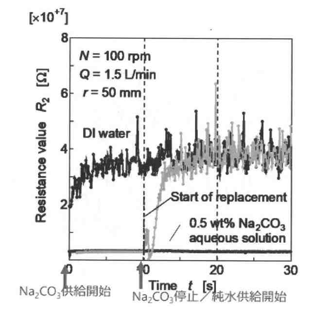 非特許文献1には、基板表面に白色水を供給した後に純水のみの供給に切り替え、液が置換される過程について基板の上方から高速度カメラで撮影して可視化する方法が記載されている。