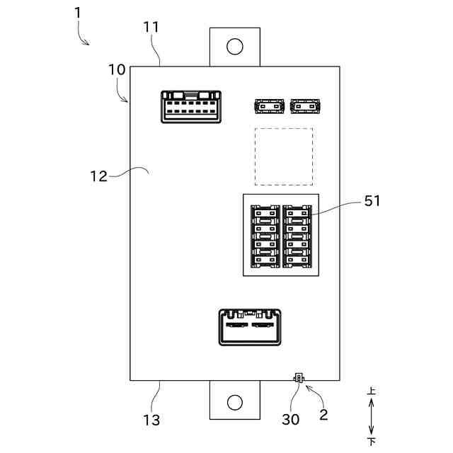 特許文献1は、電気接続箱の排水構造を開示する。電気接続箱の底壁には、排水口と、排水口を通った水を外部に排水する経路である排水部と、が形成されている。また、排水口の内壁面には突起部が形成されている。突起部は、下り勾配に傾斜した傾斜面を有する。排水口を通る水は突起部の傾斜面により、排水部に案内される。また、突起部は、排水部から電気接続箱の内部に向かう水を止める機能も有する。