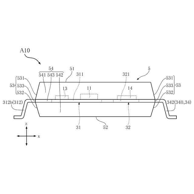 厚さ方向に直交する第1方向に互いに離れて配置された第1リードおよび第2リードを含む導通支持体と、