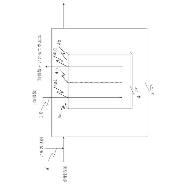 アンモニアガスを含む余剰汚泥を導入し、無機酸と接触させてアンモニウム塩を生成させ、アンモニウム塩が除去された余剰汚泥を形成する第1分離装置と、
