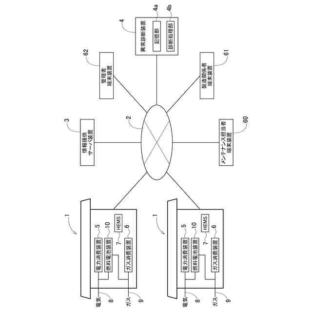 上記目的を達成するための本発明に係る異常診断システムの特徴構成は、施設に設置される燃料電池装置と、前記燃料電池装置から情報通信回線を介して受信した情報に基づいて前記燃料電池装置で発生する異常の内容を診断する異常診断装置とを備える異常診断システムであって、