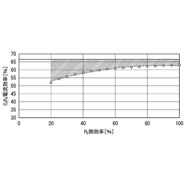 熱効率を75%とした場合の、CO電解セルにおけるC