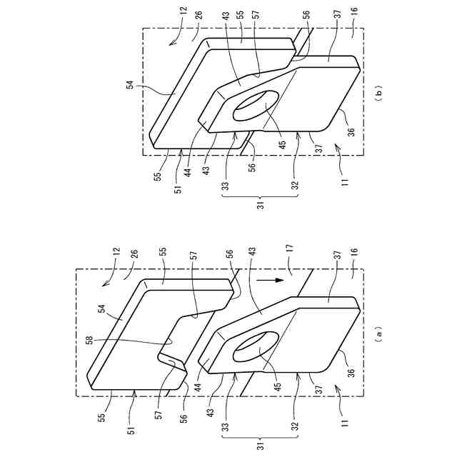 前記係止部は、前記固定部から先端へ向かうにつれて前記係止部の幅が小さくなるように傾斜される一対の係止部側面を有し、