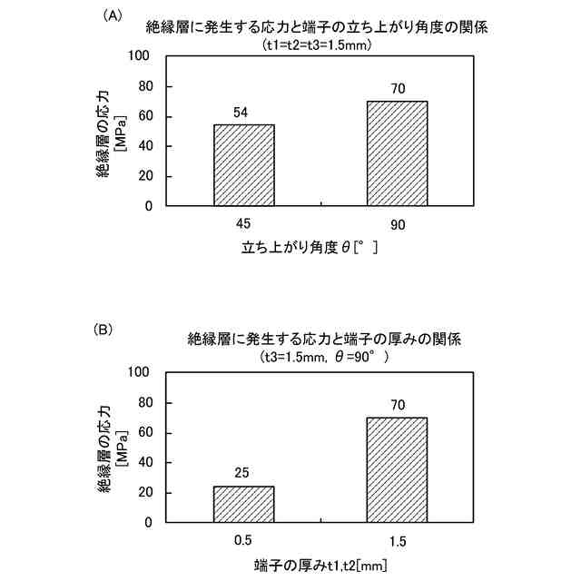 半導体装置として、インダクタンス低減のため電極に傾斜部を設け電極長を短くしたものがある(たとえば、特許文献1参照)。また、端子において、接合部材への熱応力緩和や超音波接合時の基板電極の剥離防止のため、基板電極に接合された部分を他の部分より薄くしたものがある(たとえば、特許文献2,3参照)。また、基体とリードフレーム間に一部の剥離やせん断による応力緩和部を設けたものがある(たとえば、特許文献4参照)。
