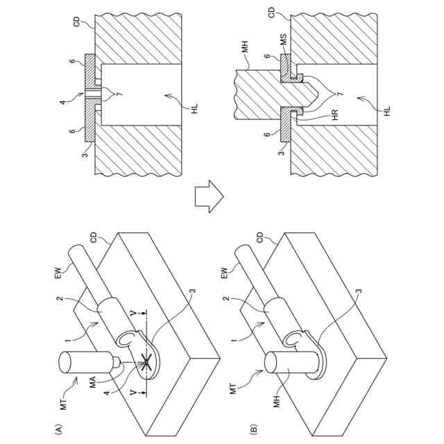 圧着端子1の結線先CDへの取付前後の様子を示す連続図である。