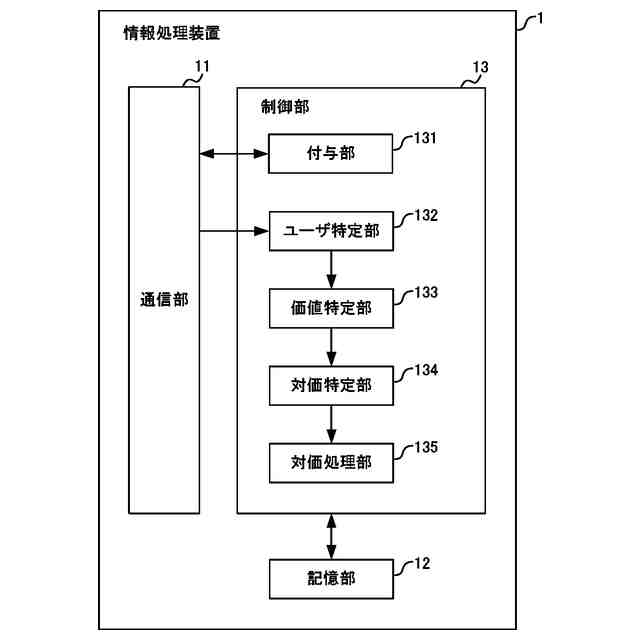 前記情報処理装置は、前記対価特定部が特定した前記対価を前記ユーザに付与、又は前記対価を前記ユーザから徴収する処理である対価処理を実行する対価処理部を有してもよい。