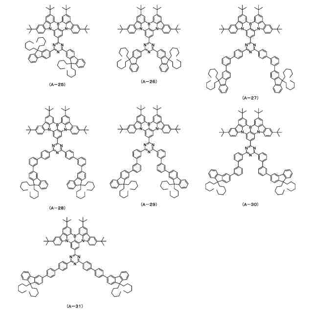 例えば、特許文献1には、DABNA骨格にアジン環のような6員環の芳香族複素環基が結合した構造で、溶解性を向上させるために、当該アジン環の置換基の一つをtert-ブチル基のようなアルキル基に変更し、分子の対称性を低下させ溶解性を高める方法が記載されている。