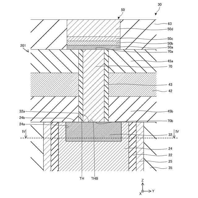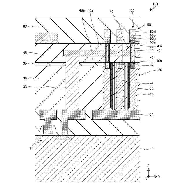 本実施形態に係る半導体装置の構造例を説明するための断面模式図であり、半導体装置のYZ面に平行な断面図を示す。