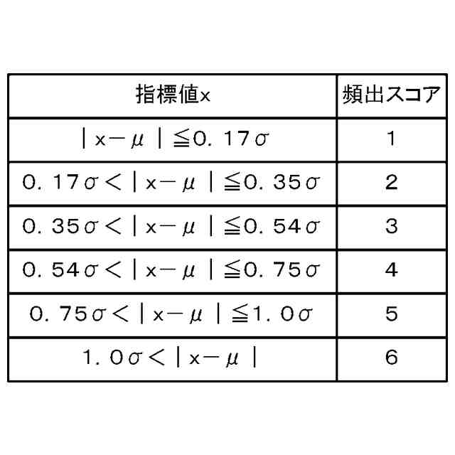 前記頻出スコアは、前記指標値の平均値と標準偏差とに基づいて前記指標値の範囲を設定することにより確定される、
