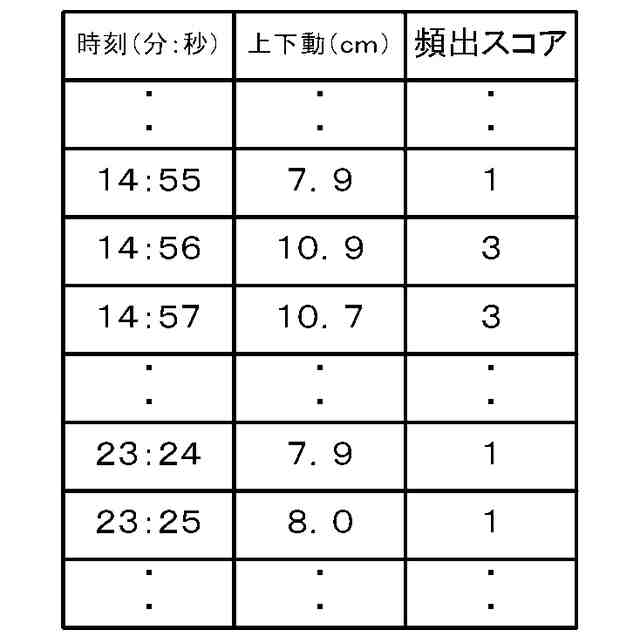 ユーザの運動に関する複数の指標値のそれぞれに対応する頻出スコアを時刻毎に合計し、合計値を時刻毎の総合頻出スコアとして確定し、