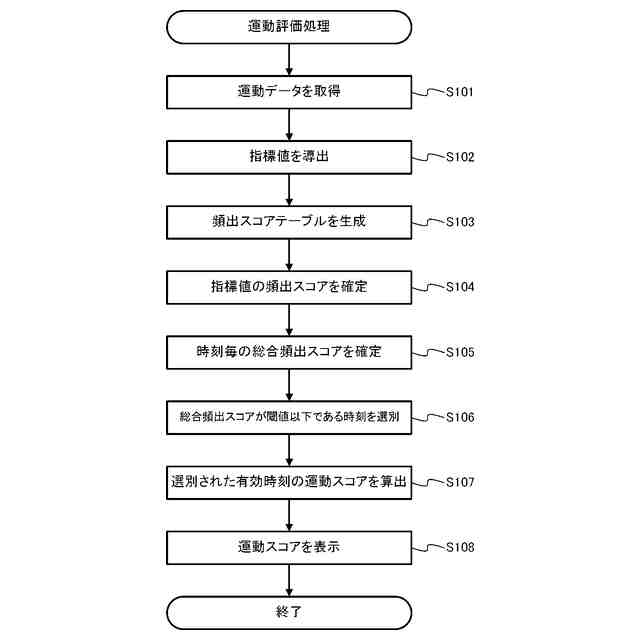 確定した前記総合頻出スコアに基づいてユーザの運動を評価するための有効時刻を選別し、