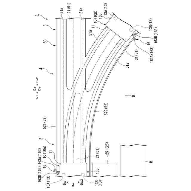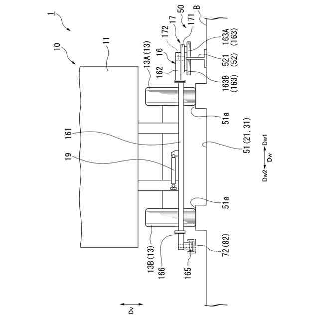 バスや鉄道以外の新たな交通手段として、ゴムタイヤを装着した走行輪によって軌道を走行する軌道系交通システムが知られている。軌道系交通システムには、車両の側方に案内輪が配置された側方案内式の軌道系交通システムや、車両の中央に案内輪が配置された中央案内式の軌道系交通システムがある。