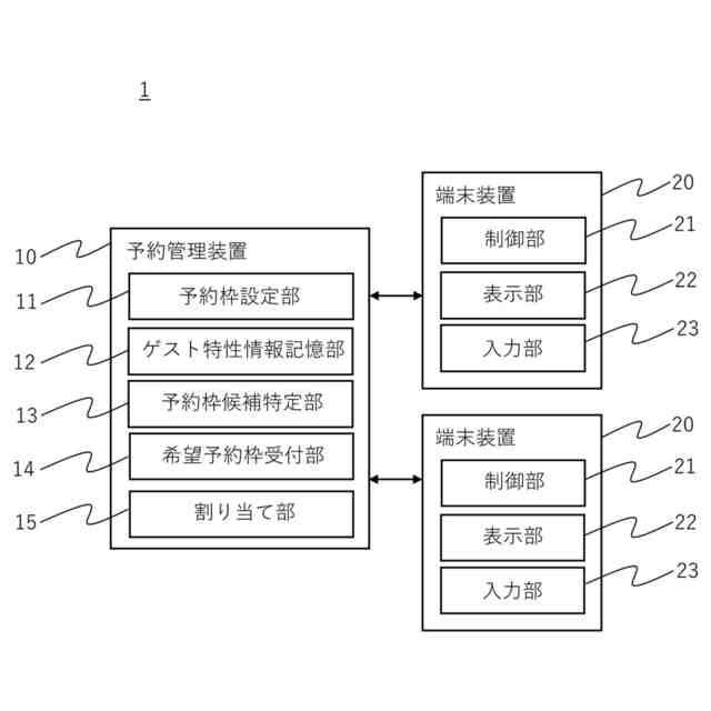 【解決手段】複数の予約枠が予め設定された予約枠設定部11と、ゲストの特性情報が記憶されたゲスト特性情報記憶部12と、各ゲストの特性情報に基づいて、各ゲストに対する予約枠候補を特定して端末装置20に出力する予約枠候補特定部13と、予約枠候補の中から各ゲストが選択した希望予約枠を受け付ける希望予約枠受付部14と、各ゲストの希望予約枠と特性情報に基づいて、複数の予約枠に対して各ゲストの予約をそれぞれ割り当てる割り当て部15とを備え、予約枠候補特定部13が、予約枠候補の中に希望予約枠が含まれないことを示す回答を受け付けた場合には、予約枠候補の設定条件を緩和し、予約枠候補を再特定する。