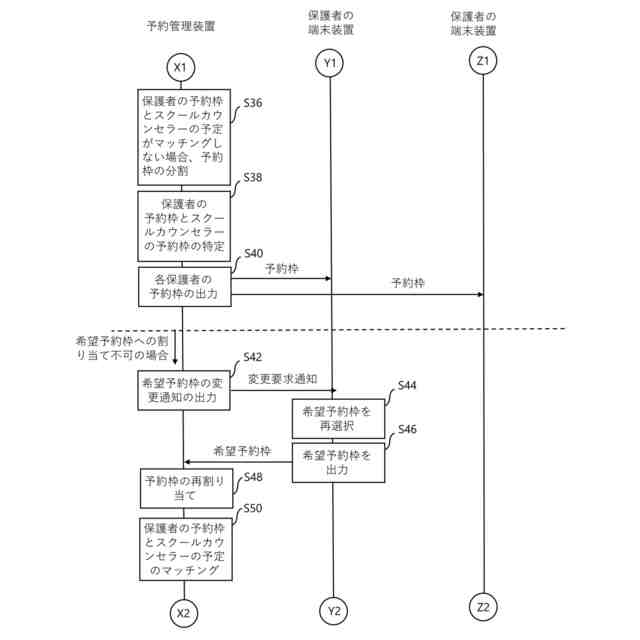本発明の予約管理装置によれば、各ゲストの希望予約枠と各ゲストの特性情報に基づいて、複数の予約枠に対して各ゲストの予約をそれぞれ割り当てる際、たとえばゲストの特性情報の中にスクールカウンセラーなどの第3者の同席が含まれ、第3者の予定も考慮してゲストの予約を予約枠に割り当てる場合に、予約を割り当てることができないゲストが発生した場合には、予約枠の単位を分割し、その分割された分割予約枠の単位でゲストの予約を割り当てるようにしたので、実質的な予約枠を増やすことができる。これにより、リスケジュールの回数を減らすことができ、手間をかけることなく、効率的にスケジュールの調整を行うことができる。