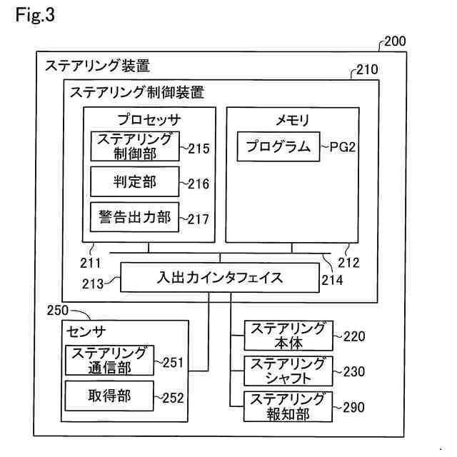 (6)上記形態において、前記センサは、前記ステアリング本体の一部に配置されていてもよい。この形態によれば、センサがステアリング本体の一部に配置されている。これにより、ステアリング本体のうち、センサが配置された部分を運転者が把持しているか否かを判定することができる。