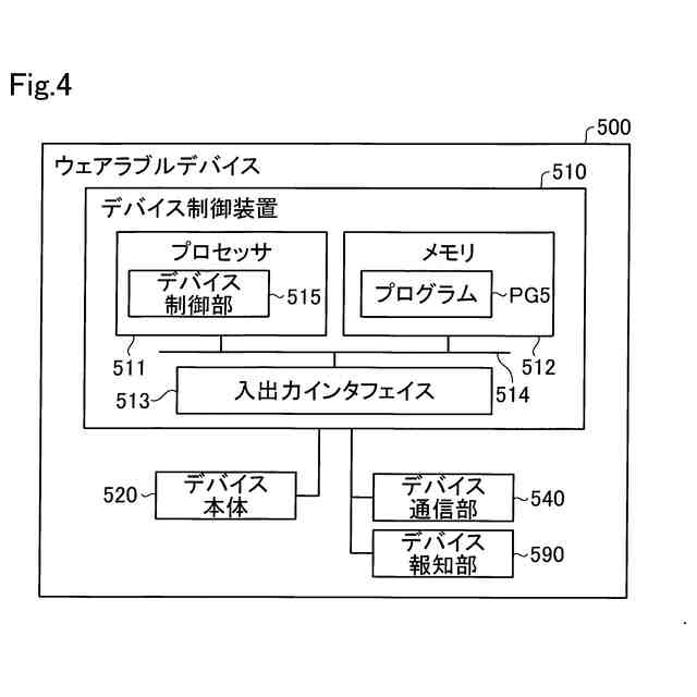 第4実施形態におけるウェアラブルデバイスの構成を示すブロック図である。
