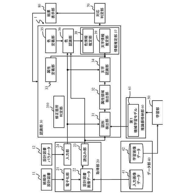前記認識部は、図形を認識するための第1機械学習モデルを用いて、前記設計図書に含まれる図形を認識する