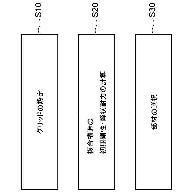 複数のグリッドのうちの全てのグリッドは、4つの柱部材と、柱部材間に配置される4つの梁部材と、グリッドを覆う複数のデッキプレートと、グリッドの面内にかけ渡される複数のブレースと、を有し、全てのグリッドの面内せん断方向の剛性Kfを式(1)とし、式(2)の場合は降伏耐力Pyfを式(3)とし、式(4)の場合は降伏耐力Pyfを式(5)とし、式(6)の場合は降伏耐力Pyfを式(7)としてよい。このように、全てのグリッドがデッキプレート及びブレースの複合構造である場合も、式(1)~(7)を用いることで、全てのグリッドの水平構面の部材選定を効率的に実施することができる。