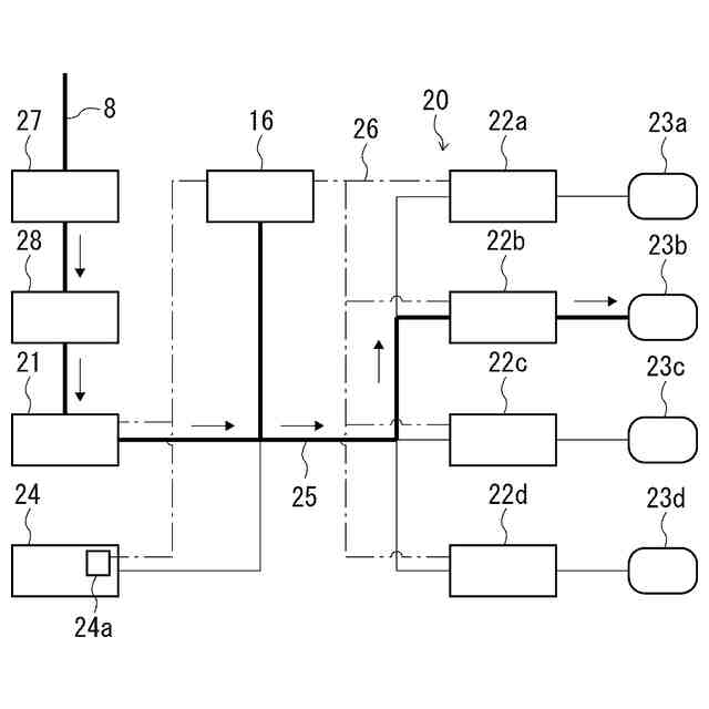電動モータの回生駆動時の動力システムでの電力の流れを例示する説明図である。