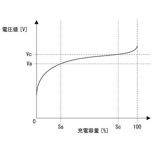 蓄電装置での充電容量と電圧値との相関を例示する説明図である。