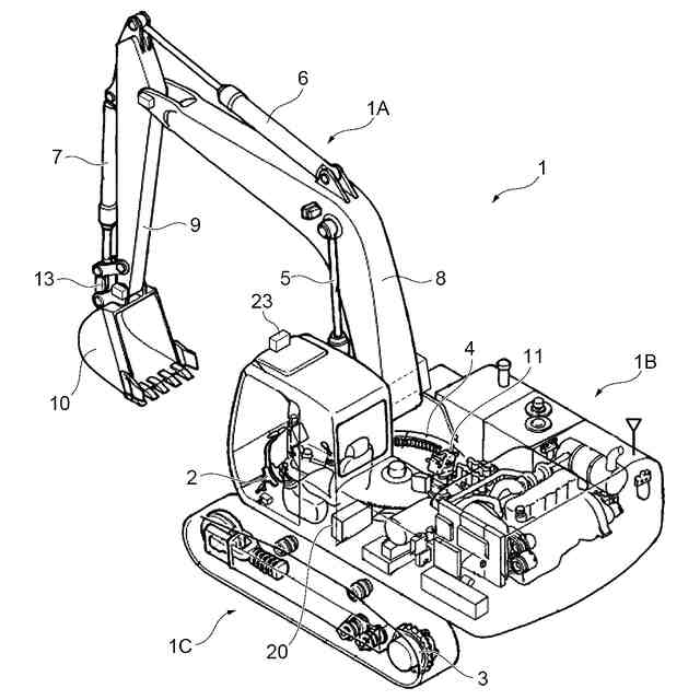 前記コントローラは、前記地形形状と前記機体幾何情報に基づいて、前記複数の位置候補において掘削可能な地形の幾何中心位置を演算する掘削地形幾何中心位置演算部をさらに備え、