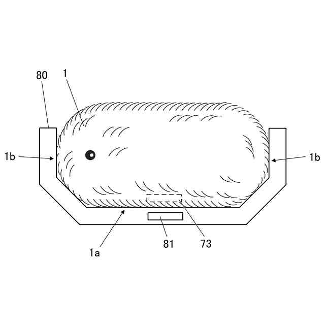 以下、本発明の実施の形態を図面に基づいて説明する。図1に示すように、ロボット1は、本体100と、本体100を覆う外装200と、を備える。ロボット1は、小型の生き物を模したペットロボットである。ロボット1は、生き物の仕草を模した互いに異なる複数の動作を行うことができる。外装200は、本体100の動きに追従して変形する。外装200は、パイル織物により形成された毛皮や、目を模した装飾部材等を有する。