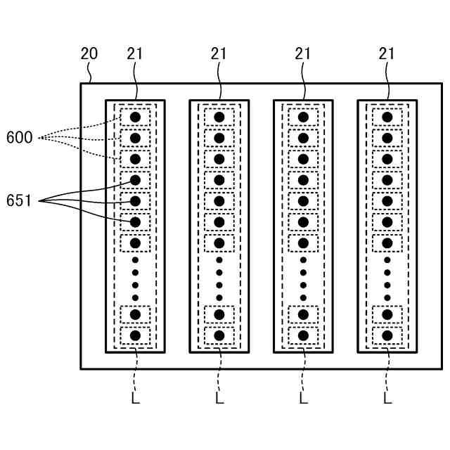 ヘッドユニットにおける複数の吐出部の配置の一例を示す図である。