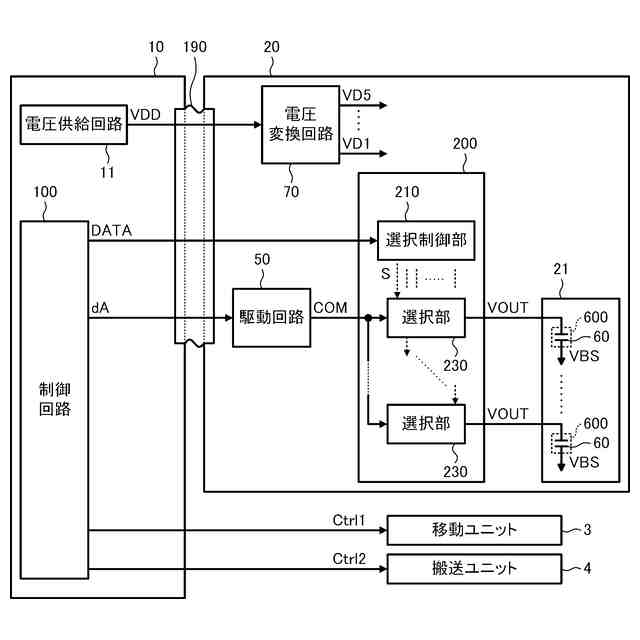 前記第1電圧信号を前記駆動回路に供給するか否か、及び前記第2電圧信号を前記駆動回路に供給するか否かを選択する電圧選択回路を有する、