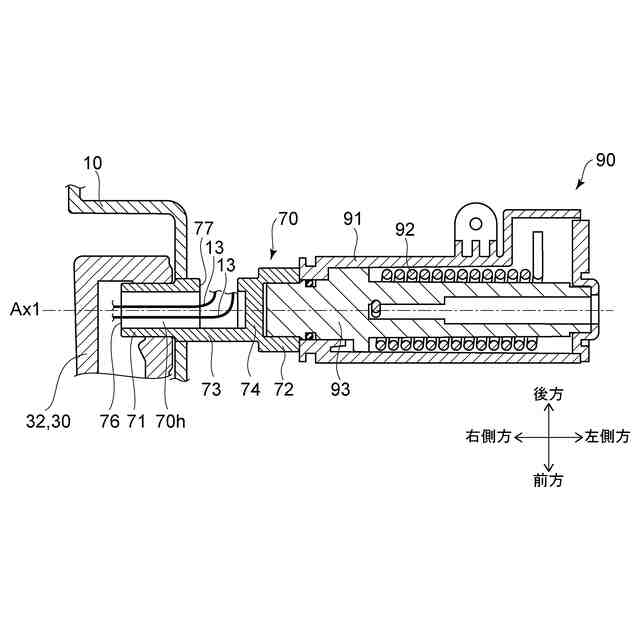 前記連結部は、前記電線が前記連結部内から第1開口を通って前記回動部側へ延び前記連結部内から第2開口を通って前記ケーシング側へ延びるように、前記電線を挿通可能な前記第1開口と前記第2開口とを有し、