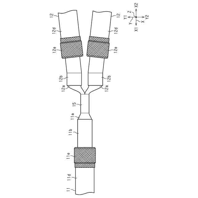 前記1以上の第1シールド電線と前記2以上の第2シールド電線とは、前記芯線接続部を基点に互いに反対方向に延びており、