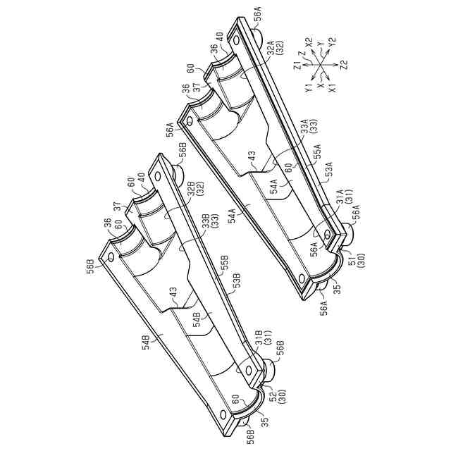 前記複数の分割体は、第1分割体と、前記第1分割体に合体可能に形成された第2分割体と、を有し、