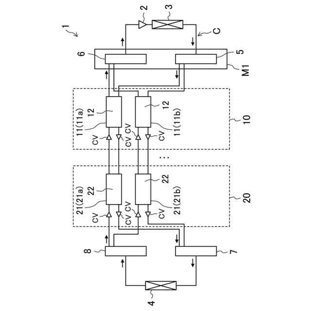 本開示の第2の態様は、第1の態様において、前記熱媒体集約部(50)は、多方切換弁(52,53)、集合管(51)及び分配管(54)のうちの少なくとも1つを含む。