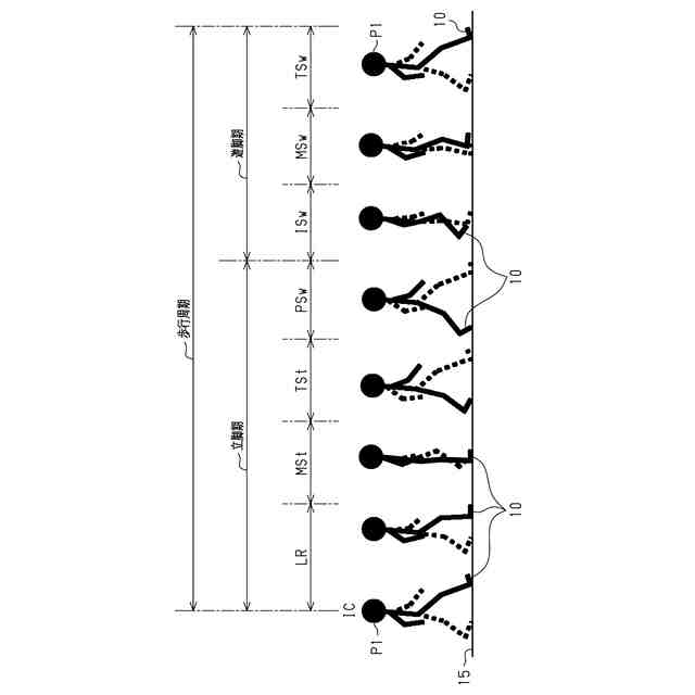 理学療法士、整形外科医等は、負傷、病気等で身体に障害のある人や、障害の発生が予測される人(以下、これらの人を患者という)に対して、運動療法、物理療法等を施すことにより、自立した日常生活が送れるよう支援する。この支援に際し、上記理学療法士等は、一般に、患者の歩行分析を行う。歩行分析では、患者の歩行動作を見て、歩行周期のうちのどの歩行相であるかを正確に判定することが要求される。歩行周期とは、歩行動作において、例えば、左右の一方の足の踵が地面に接触してから、再び地面に接触するまでの期間である。歩行周期は、複数の歩行相からなる立脚期と、複数の歩行相からなる遊脚期とにより構成される。各歩行相には、それぞれ果たすべき役割がある。いずれかの歩行相で、正常な状態から逸脱する状態が見られれば、その歩行相や、前後の歩行相での歩行姿勢に改善の余地がある。対象者に対し、正常な状態に戻すための対策を講ずることが必要となる。そのため、歩行相の正確な判定が重要となってくる。