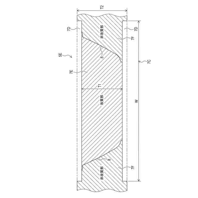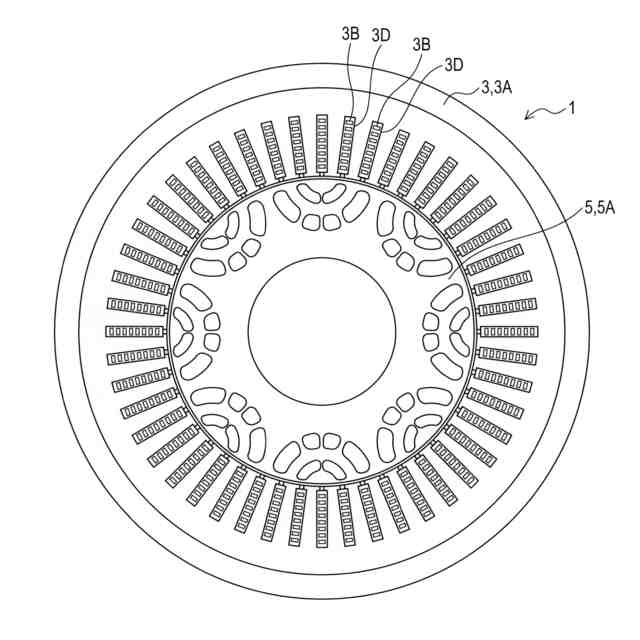 これにより、ロータ(5)とステータ(3)とは、シャフトとプレーンベアリング(滑り軸受)と同様な関係となる。つまり、ロータ(5)がシャフトに相当し、ステータ(3)の内周面がプレーンベアリング(メタルともいう。)に相当するように機能する。