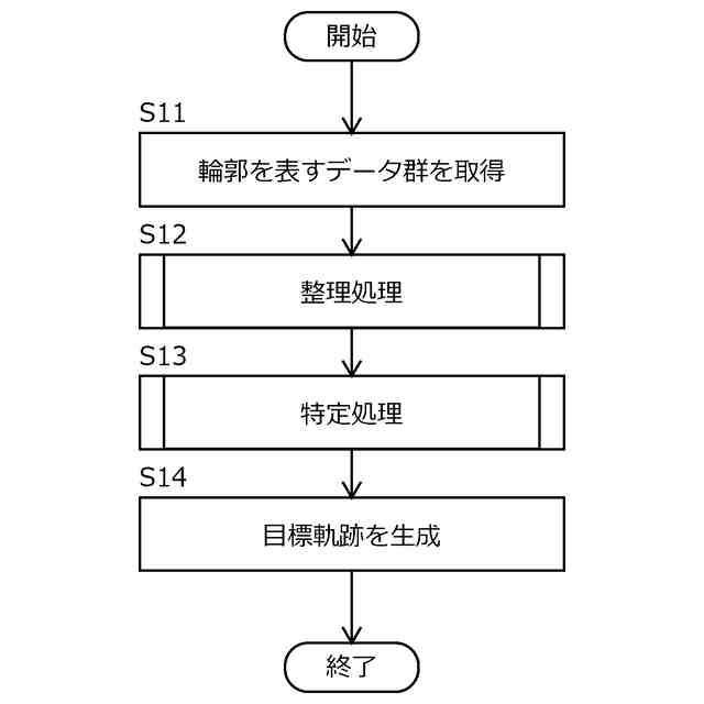 ところで、上記の技術では、対象物の輪郭が多角形である場合、ツールを角に沿わせる動作は一般的に困難であるため、辺ごとにツールの軌跡を作成する必要がある。しかしながら、対象物の輪郭は整った多角形であるとは限らないため、輪郭に含まれる角を特定することが困難な場合がある。