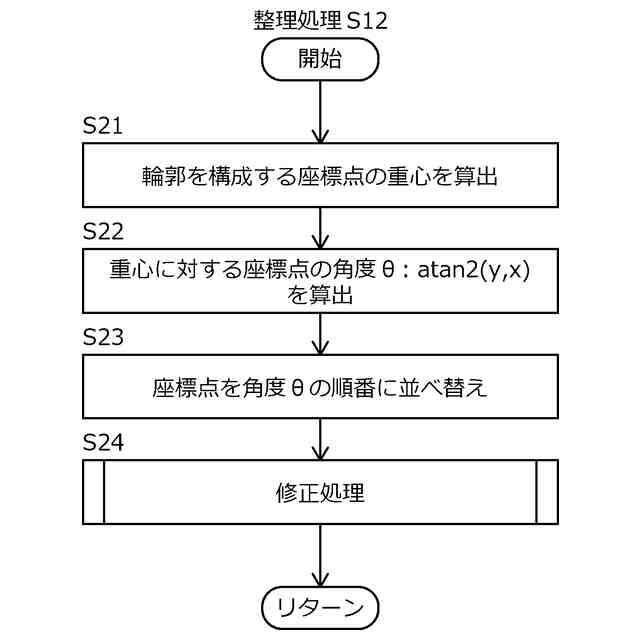 上記態様において、前記基準点は、前記輪郭を構成する前記複数の座標点の重心であってもよい。これによれば、重心を中心とする周方向の順番に座標点を並べることが可能となる。