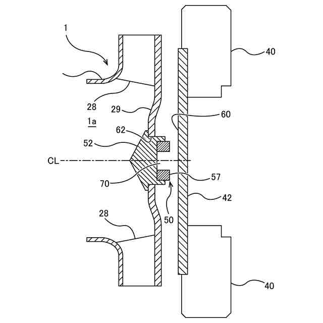 一態様では、前記主板は、その中央に形成された通孔を有しており、前記センターキャップは前記通孔に挿入されている。