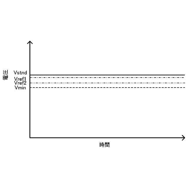 バッテリ25の定格電圧Vstndと電圧フィードバック制御の閾値Vrefと電圧下限値Vminとの関係の一例を示す説明図である。